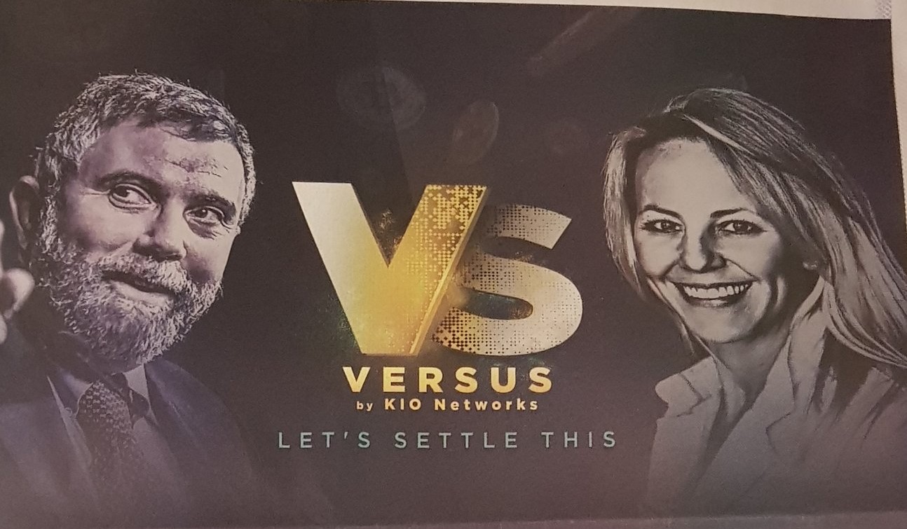 La discusión para saber si el Bitcoin (y las cryptomonedas en general) sirven y tienen futuro parece no tener fin. Y para agregar mas elementos Kio Networks nos trae una discusión de alto nivel entre dos eminecias con puntos de vista opuestos: Paul Krugman, Premio Nobel de Economía 2008 que esta en contra del Bitcoin; y Kathryb Haun, directiva de CoinBase (una de las casas de cambio de cryptomonedas más famosas de EEUU).